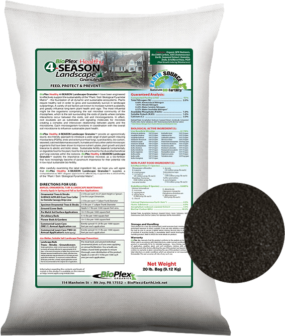 After carefully examining the label ingredient list, we hope you will agree that BioPlex Healthy 4-SEASON Landscape Granules™ supplies a comprehensive 360° degree approach to effectively support the sustainability of the “Plant / Soil / Biological Pyramidal Matrix”.