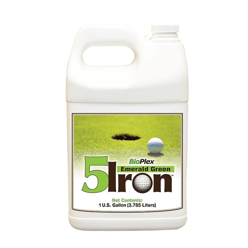 BioPlex Emerald Green 5-Iron™ is like no other competitive iron supplement on the market. Without question, it will provide diverse and enhanced agronomic benefits. Through new proprietary biochemistry technology, key proprietary ingredients are effectively homogenized (antioxidants, amino acids, natural surfactants, and complexing polysaccharides) via a new plant extraction process. The net results are new molecular compound chemistries that more efficiently complex metal ions, resulting in superior iron uptake. No matter if you utilize “5-Iron” in turf for color and root mass or in ornamental applications for chlorosis, when used at its unprecedented LOW use rate, this product is fast-acting, non-phytotoxic, and non-staining. It takes performance results and expectations of iron technology to a brand new, never-beforeseen, elevated level.