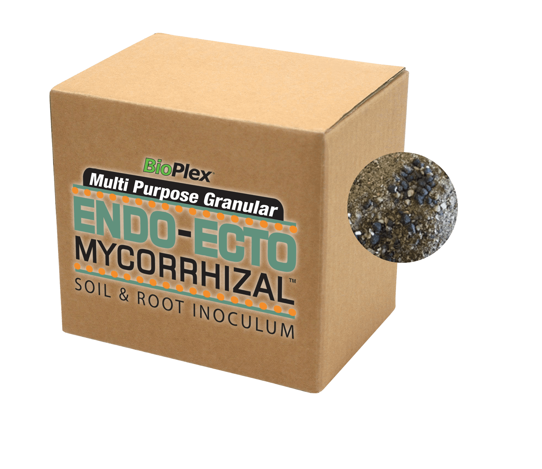 BioPlex (Multi Purpose) Granular Endo-EctoMycorrhizal Soil & Root Inoculum™ is a formulation consisting of 12 carefully selected species of endomycorrhizae, ectomycorrhizae, plus 12 select bacterial and microbial species. It contains 16 species of endo-ectomycorrhizal fungi cultures and beneficial bacteria that colonize most plant roots and soils. Mycorrhizae mycelia filaments (which form a root-like system) increase the adsorbing capacity of roots 10 to 10,000 times. Nearly all commercially produced plants have the potential to form mycorrhizal unions and require this association for maximum growth and performance in all out planted environments.