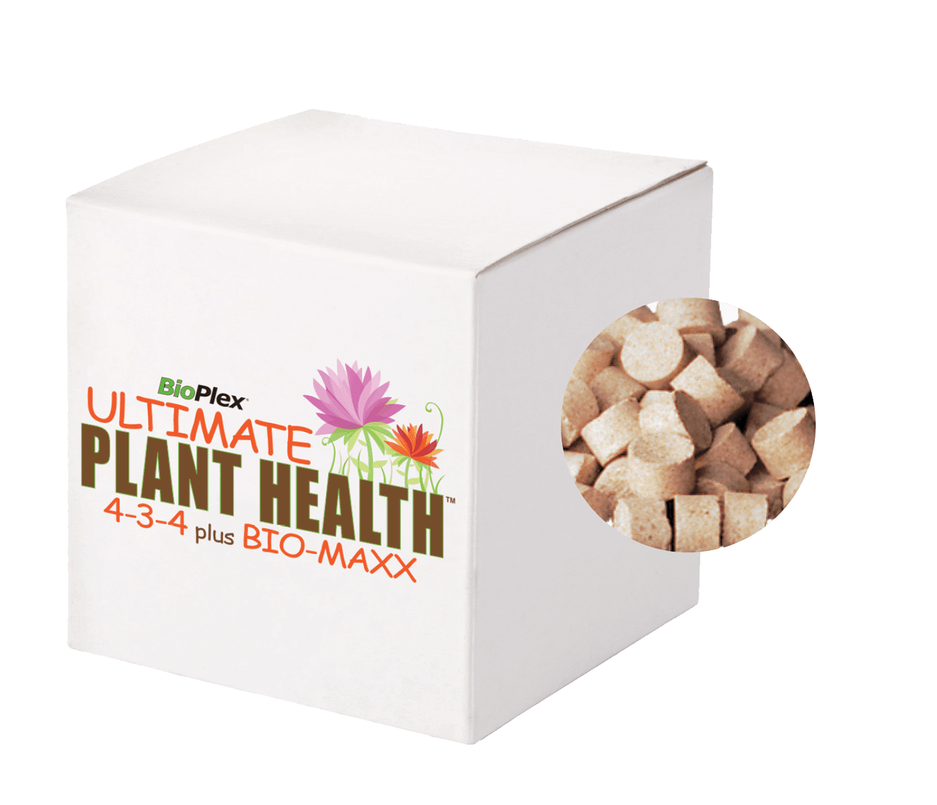 BioPlex ULTIMATE PLANT HEALTH™ 4-3-4 plus BIO-MAXX planting tablet is an all natural and probiotic bio-based fertilizer planting tablet. Well-adapted for a wide range of ornamental landscape installations, maintenance and nursery-grower container applications. It is available in popular 5- and 15-gram sizes. The 5-gram tablets are ideal for smaller bedding plant outplantings and small container production. The 15-gram tablets are excellent for larger outplanted container or smaller trunk caliper B&B plants. You will find them well suited for use in annual and perennial flowers, ground covers, ornamental grass plants, flowering trees and shrubs, fruit trees, hanging baskets, bedding plants, tropical plants and palms.